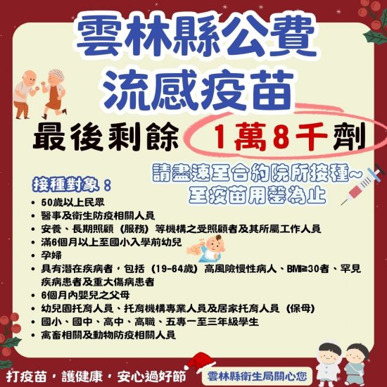 疾病管制署(下稱疾管署)今(6)日表示,近期氣溫變化大,可能增加疾病傳播風險,為加強防範流感及新冠等呼吸道傳染病,提醒民眾應落實手部清潔、注意飲食衛生,出入人多擁擠場所建議佩戴口罩、生病在家休息及遵守咳嗽禮節等衛生習慣,並儘速接種公費流感新冠疫苗,讓相聚更安心,保護自己及家人的健康。