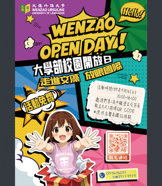 文藻學校財團法人文藻外語大學辦理115年大學部校園開放日活動海報