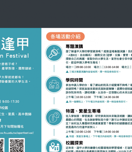 六、活動網址:https://www.fcu.edu.tw/openfestival/。